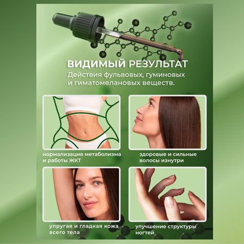 Оптимальное соотношение трех фракций: Фульвовые - 45%, Гуминовые - 10%, Гиматомелановые - 45%. Более выраженным эффектом обладают гиматомелановые вещества.