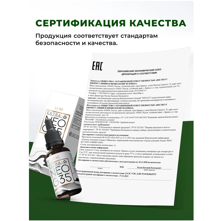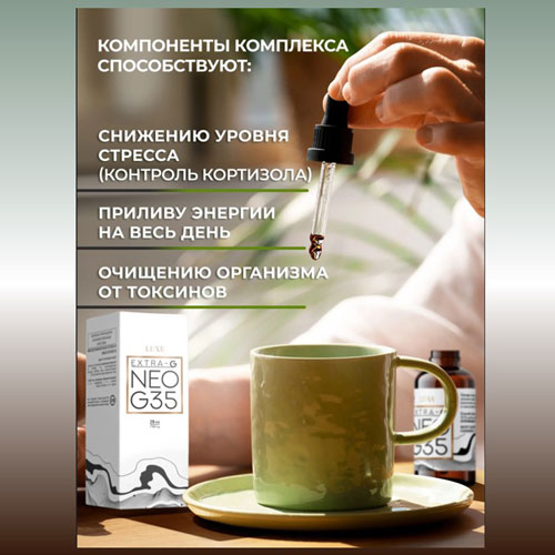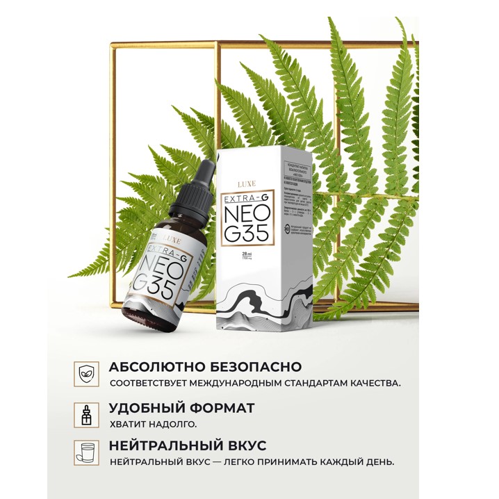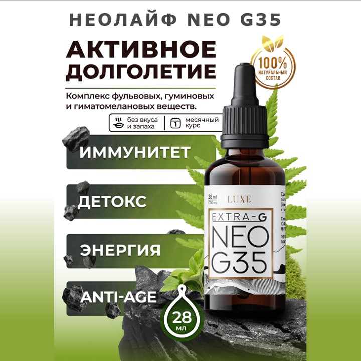 НЕОЛАЙФ NEO G35 28мл- это мощный природный комплекс, созданный для борьбы с усталостью, стрессом и возрастными изменениями на клеточном уровне. Высокая концентрация гиматомелановой фракции помогает эффективно очищать организм от токсинов, восстанавливать иммунитет и наполнять тело энергией. Забудьте о слабости и упадке сил — с NEO G35 вы сохраняете молодость, бодрость и внутренний баланс каждый день, несмотря на нагрузки и вызовы современного мира!