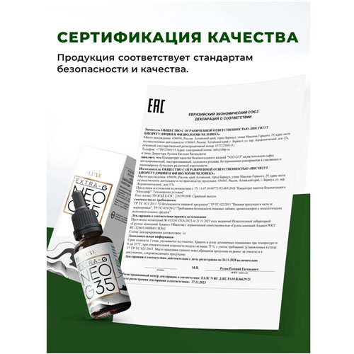 Для производства комплекса используется сырье высшего качества из экологически чистых регионов Алтая и Прибайкалья. Уникальная технология вакуумной экстракции позволяет выделить три ключевые фракции, которые в специально выбранном соотношении формируют NEO G35 с высокой концентрацией гиматомелановых веществ