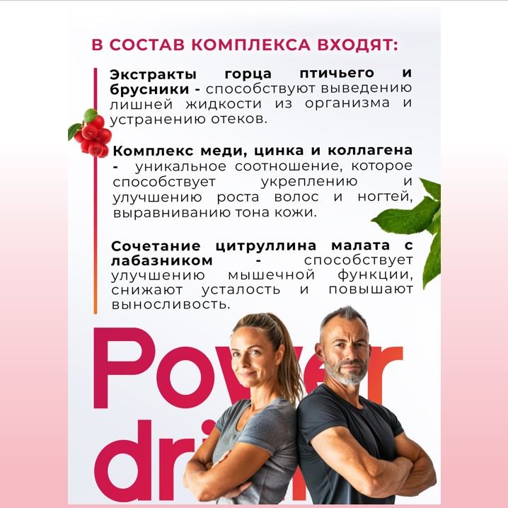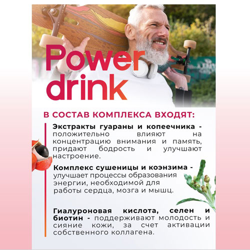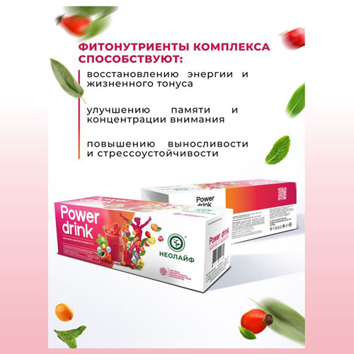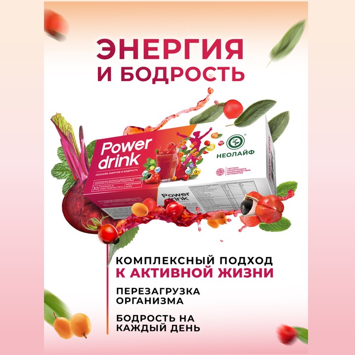ЭНЕРГИЯ И БОДРОСТЬ. НЕОЛАЙФ POWER DRINK-Ваш ежедневный источник энергии, способный внести яркий заряд бодрости в каждый день!Ваш ежедневный источник энергии, который поможет вам зарядиться бодростью и активностью на весь день! Этот сбалансированный energy-напиток разработан с учетом потребностей современного человека. Он содержит фитонутриенты, которые поддерживают здоровье, натуральные пребиотики для улучшения пищеварения, а также витамины и минералы в оптимальных соотношениях для максимальной пользы. С НЕОЛАЙФ POWER DRINK вы сможете легко справляться с повседневными задачами, поддерживать высокий уровень энергии и улучшать общее самочувствие. Это комплексный подход к здоровью, направленный на достижение гармонии внутри и снаружи. Мы позаботились о каждой детали, чтобы вы получили максимальный результат!