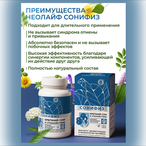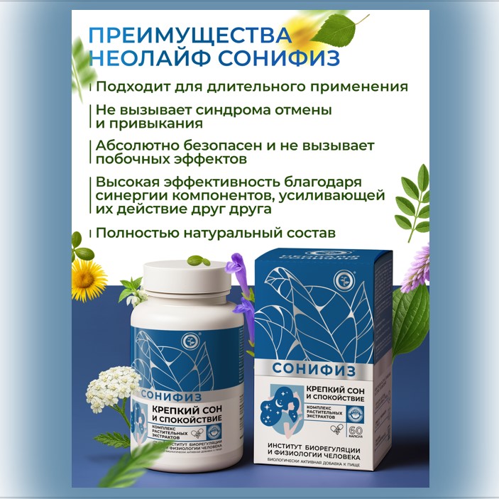 Неолайф Сонифиз — натуральный комплекс для улучшения сна, снижения стресса и поддержки нервной и гормональной систем.