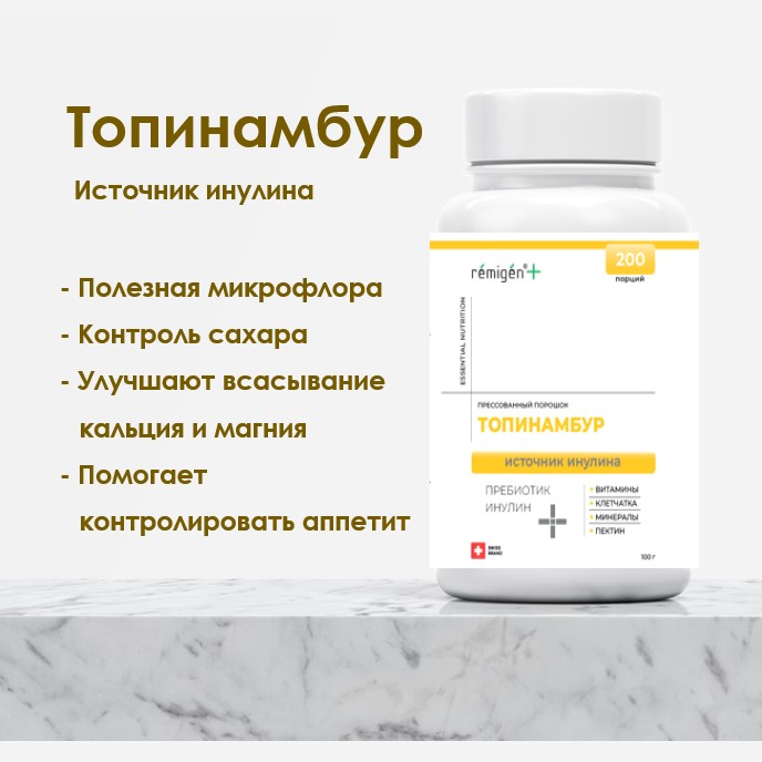 содержит уникальный набор природных веществ: пребиотик инулин, клетчатка, пектин, витамины и минералы.