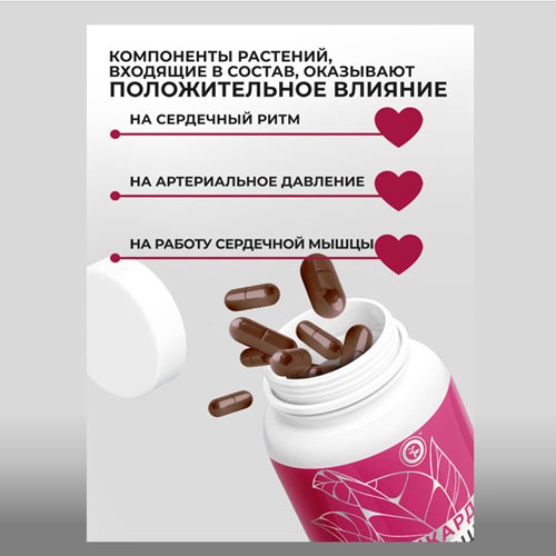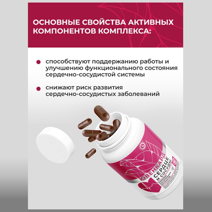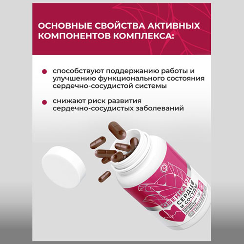 Общеукрепляющий комплекс для сердца и сосудов, улучшает их функцию и снижает риск сердечно-сосудистых заболеваний.