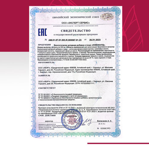 Качество: Вся продукция Института биорегуляции и физиологии человека сертифицирована и соответствует госстандартам.